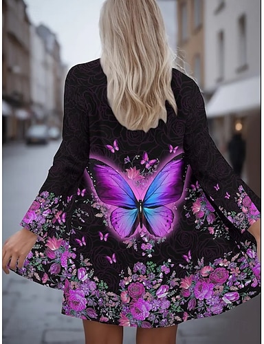 女性用 コート 保温 ライトウェイト プリント ファッション バタフライ カジュアル レギュラー ノーカラー レギュラー 長袖 アウターウェア ブラック ホワイト ベージュ 春 秋