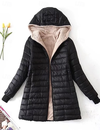 女性用 冬物コート パーカージャケット 保温 快適 ジッパー ポケット カジュアル 平織り アウトドア バケーション ストリート お出かけ レギュラー フード付き レギュラー 長袖 アウターウェア 海軍 ブラック ピンク 秋 冬