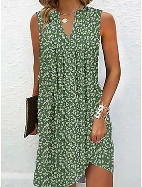女性用 ミニドレス サマードレス カジュアル 日常 レギュラー フラワー グラフィック ノースリーブ Vネック ルビーレッド ネイビーブルー グリーン グレー 夏
