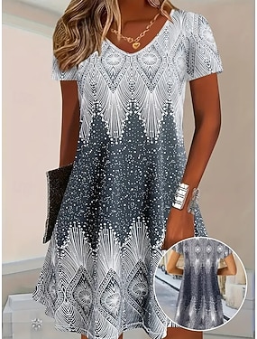 女性用 ミディドレス A ラインドレス サマードレス 旅行度假风 カジュアル 日常 祝日 レギュラー グラフィック 幾何学模様 ハーフスリーブ クルーネック ルビーレッド ブルー グリーン 夏 春