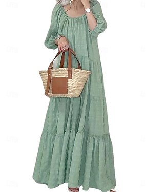 女性用 マキシドレス カジュアルドレス サマードレス ベーシック カジュアル バケーション 日常 レギュラー 平織り ハーフスリーブ クルーネック グリーン カーキ色 夏