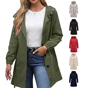 女性用 コート 防水 快適 ポケット ボタン ファッション ストリートスタイル 平織り アウトドア カジュアル/普段着 ロング フード付き レギュラー 長袖 アウターウェア ブラック ルビーレッド カーキ色 秋 冬