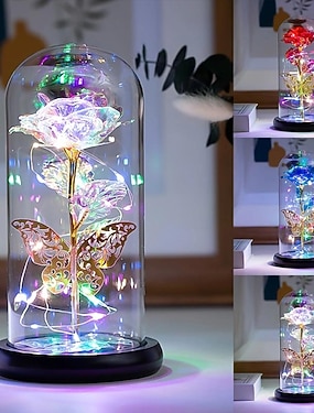 ガラスドームのロマンチックなLEDローズバタフライランプ - 結婚式、誕生日、バレンタインデー、母の日の家の装飾やギフトに最適です(電池は含まれません)。