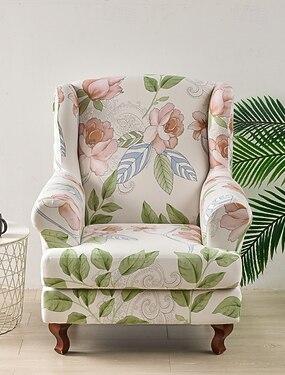 ウィングチェアスリップカバースパンデックスファブリックソファカバーウィングバックアームチェア、シートクッションカバー花柄家具プロテクターリビングルーム用