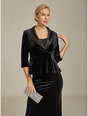 女性用 ドレッシーなトップス イブニングトップス 純色 エレガント ヴィンテージ スタイリッシュ 七分袖 Vネック レギュラートップス ブラック 冬