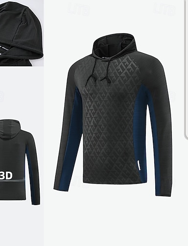 男性用 ハイキングトップ スポーツパーカー 長袖 フード付き トップス アウトドア 速乾性 モイスチャーコントロール 防臭 高通気性 ポリエステル パッチワーク ダークグレー ブラック レッド 狩猟 テニス アスレチック