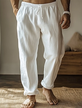 男性用 ジョガー リネンパンツ ズボン サマーパンツ ビーチパンツ ドローストリング 弾性ウエスト 平織り 履き心地よい 高通気性 全長 アウトドア 日常 祝日 旅行度假风 ファッション ブラック ホワイト