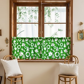 1枚のマルチカラーパターンショートキッチンカーテン、ハーフウィンドウカフェカーテン、クロスボーダークリスマス小窓装飾、ポリエステルコットン