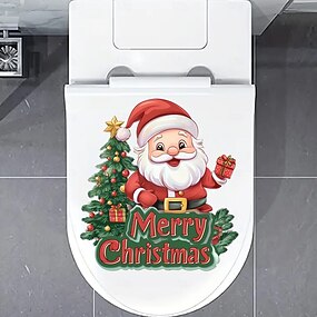 クリスマスステッカー 壁用デカール 漫画サンタクロース ギフト トイレ 取り外し可能 防水ビニール 壁画 ホリデー バスルーム 壁飾り 楽しいパーティー背景 家庭用装飾
