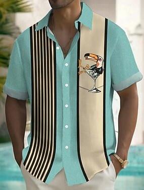 男性用 シンボル ドリンク シャツ アロハシャツ 半袖 シャツ キューバンカラー ハワイアン カジュアル アウトドア ストリート カジュアル/普段着 ブルー パープル グリーン S M L