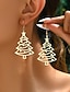 ゴールドのクリスマスツリー型ダングルイヤリング - 女性向けのホリデー向けお祝いジュエリー、クリスマスデコレーションイヤリング