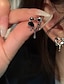 ブラッククリスタルのドリップデザインが施されたシルバーのハート型イヤリング - 女性のためのエレガントなスタッドイヤリング