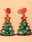 キラキラ輝くクリスマスツリーのイヤリング - 星と宝石が付いた赤と緑のホリデーイヤリング
