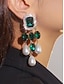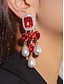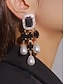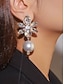 女性用クリスタル&パールドロップイヤリング - パーティー、結婚式、夜のイベントにぴったりの華やかなラインストーンステートメントダングルイヤリング