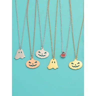 ハロウィンをテーマにした女性用ステンレススチールペンダントネックレス。カボチャとゴーストのチャームが特徴で、コスチュームパーティーやお祝いの行事に最適です。