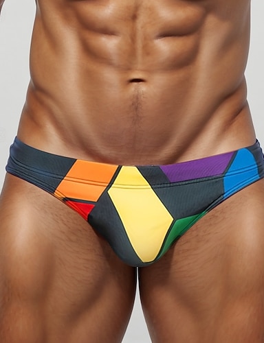 男性用 スイムソング 下着 スイムブリーフ パッチワーク ドローストリング 伸縮性 高通気性 ボトムズ サーフィン ビキニ 潜水 夏