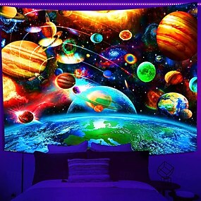 ブラックライトタペストリー暗闇で光る光るパーティーUV反応性惑星宇宙トリッピーミスティー自然風景ハンギングタペストリー壁アート壁画リビングルームベッドルーム用
