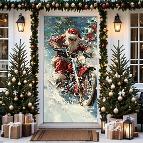 クリスマスドアデコレーション、ドアカバー、クリスマスモーターサンタドアタペストリー、ドアカーテンデコレーション背景、玄関ドア用ドアバナー、農家のホリデーパーティー装飾用品、屋内/屋外用