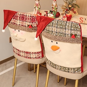 クリスマスチェアカバー、新しいぬいぐるみサンタ &雪だるまシートカバー、ダイニングルームのお祝いのホリデーチェアスリップカバー、ヨーロッパスタイルの家の装飾