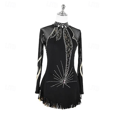 ボールルームダンス ドレス クリスタル / ラインストーン 女性用 性能 デイリーウェア 長袖 スパンデックス
