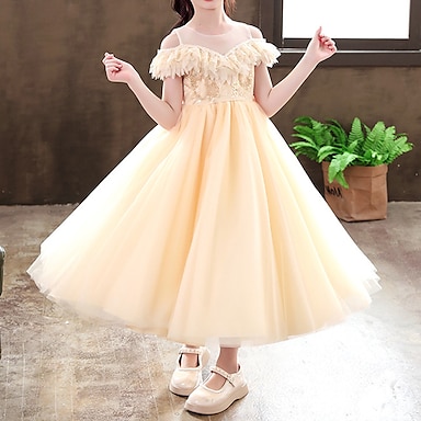 子供 女の子 フラワーガールドレス パーティードレス 純色 ノースリーブ 性能 結婚式 パーティー メッシュ プリンセス 甘い メッシュ ミディ シースドレス チュールワンピース 夏 春 秋 2〜12年 シャンパン
