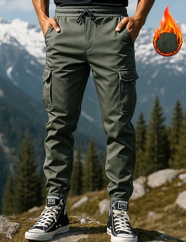 男性用 カーゴパンツ ハイキング パンツ サーマルパンツ 冬 アウトドア レギュラー 保温 ボトムズ ポケット 弾性ウエスト ブラック アーミーグリーン キャンピング&ハイキング ランニング S M L XL XXL
