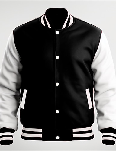 男性用 トランジションジャケット バーシティジャケット デイリーウェア ポケット オールシーズン カラーブロック ストリートファッション スタンド レギュラー ブラック ネイビーブルー ブルー レッド ジャケット