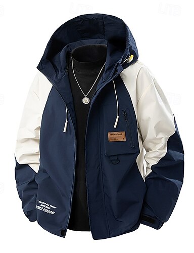 男性用 アウトドアジャケット 冬物コート フリースの上着 パーカージャケット 日常 バケーション 保温 防風 ポケット 取り外し可能なフード 春 & 秋 カラーブロック ファッション クラシック フード付き レギュラー ブラック レッド ロイヤルブルー アーミーグリーン ジャケット