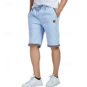 男性用 ショーツ サマーショーツ ビーチショーツ ドローストリング 弾性ウエスト まっすぐな足 平織り 履き心地よい 高通気性 ショート カジュアル 日常 祝日 ファッション クラシック ホワイト ネイビーブルー