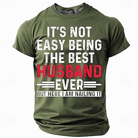 男性用 面白いスラング お父さん Tシャツ 半袖 Tシャツ 3Dプリント クルーネック シャツ ファッション 日常 カジュアル ストリート カジュアル 日常 ブラック ルビーレッド ブルー 夏 春 オールシーズン 衣類 S M L XL XXL XXXL