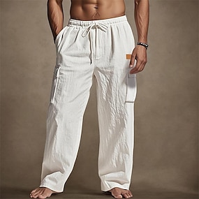 男性用 リネンパンツ ズボン ドローストリング ポケット 弾性ウエスト 平織り 履き心地よい 高通気性 日常 ベーシック ブラック ホワイト