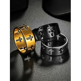 メンズチタンスチールクロスリング、耐久性のあるステンレスゴシックバンドジュエリー、普段使い、パーティー、ギフトに最適なファッション宗教ステートメントリング
