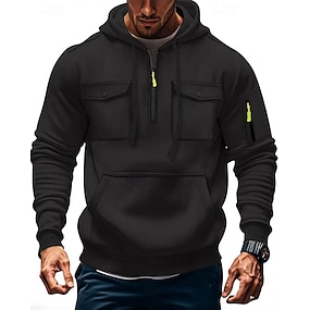 男性用 パーカー クォータージッパーパーカー ミリタリータクティカルパーカー ブラック アーミーグリーン ネイビーブルー キャメル フード付き 平織り フロントポケット クォータージップ スポーツ カジュアル 日常 ストリートファッション クール デザイナー 春 & 秋 衣類 パーカー トレーナー