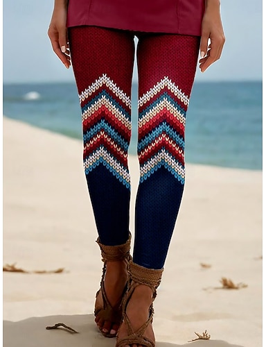女性用 レギンス 旅行度假风 ヴィンテージ ファッション 全長 ハイウエスト グラフィック 幾何学模様 抽象的 プリント 保温 ソフト 高通気性 伸縮性あり フォーマル アウトドア バケーション ルビーレッド ブルー グリーン 夏 春 秋 スリムフィット