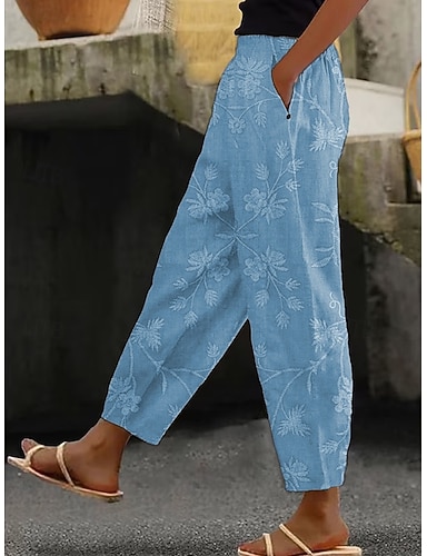 女性用 チノパン バギーパンツ 旅行度假风 ヴィンテージ エスニック 足首丈 ハイウエスト フラワー グラフィック 勾配 ドローストリング パッチワーク プリント 高通気性 マイクロエラスティック バケーション ストリート カジュアル ディープブルー 夏 春 秋 ルーズフィット