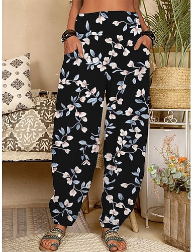女性用 チノパン 旅行度假风 ヴィンテージ エスニック 足首丈 ハイウエスト フラワー グラフィック リーフ柄 ポケット ソフト 屋外 高通気性 伸縮性なし バケーション ストリート カジュアル ディープパープル ブラック ライトパープル グリーン 夏 春 秋 ルーズフィット
