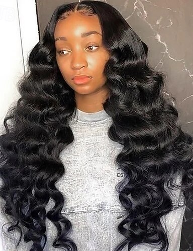 13x6 ルーズディープウェーブ レースフロントウィッグ 人毛 150% 密度 黒人女性用 ベビーヘアー付き