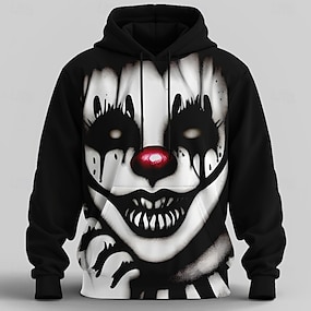 Halloween 男性用 ジョーカー 3D パーカー スウェットシャツ パンク 誇張された クルーネック クラブ ストリートウェア ブラック ドローストリング 秋 冬 デザイナー