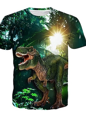 男の子 3D グラフィック 動物 恐竜 Tシャツ Tシャツ 半袖 夏 春 ファッション ベーシック 子供 4〜12年 クルーネック アウトドア カジュアル 日常 レギュラー