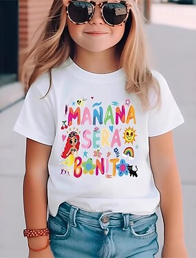コットン100% 子供 女の子 ホワイト カートゥン 手紙 Tシャツ Tシャツ クルーネック 半袖 アウトドア 日常 バケーション クラシック カジュアル プリント 夏