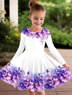 女子 3D グラフィック バタフライ ドレス 長袖 夏 春 バケーション 日常 祝日 プリンセス 美しい 甘い 子供 4〜12年 カジュアルドレス A ラインドレス 膝丈 レギュラー