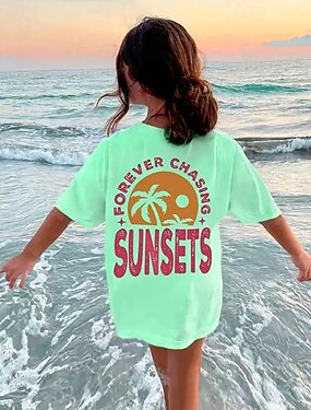 女の子 3D ココナッツの木 レタード Tシャツ Tシャツ 半袖 夏 春 ファッション ベーシック 子供 4〜12年 クルーネック アウトドア カジュアル 日常 レギュラー