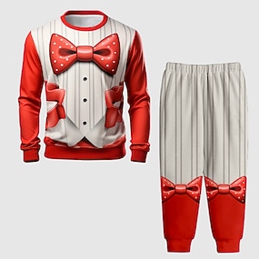 男の子 3D 蝶ネクタイ形 クリスマスセット スウェット&スウェットパンツセット セット 長袖 3Dプリント 秋 冬 活発的 ファッション クール 子供 4年以上 クルーネック アウトドア バケーション ストリート レギュラー
