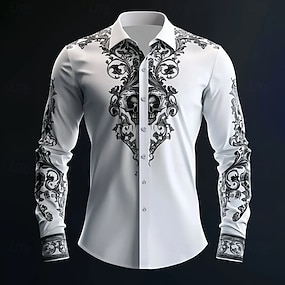 Halloween 男性用 スカル 複雑な花柄 シャツ ボタンアップシャツ 長袖 ダークゴシックスタイル アウトドア 祝日 春 秋 折襟 3Dプリント 襟付きシャツ 白+黒 ホワイト