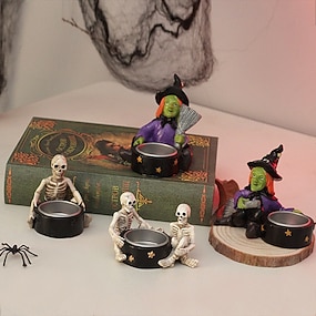 ハロウィン樹脂製置物 魔女の頭蓋骨 キャンドルホルダー デコレーション 不気味な卓上飾り パーティー ホームデコレーション ゴシックスタイル 樹脂工芸 ハロウィン お化け屋敷ディスプレイ