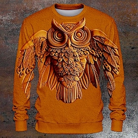 Halloween 男性用 フクロウ フーディーズ スウェットシャツ 長袖 トレーナー クルーネック ファッション クール 日常 3Dプリント 3Dプリント 秋 冬