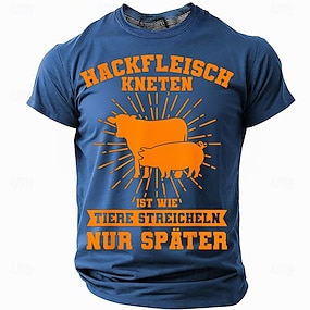面白い メンズ グラフィック Tシャツ - "挽肉のこねることは動物を撫でるようなもの、ただし後で" 肉愛好家の肉屋ユーモア