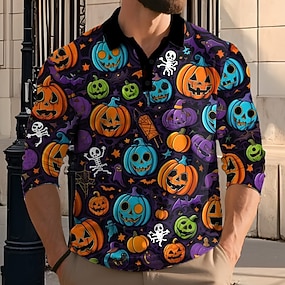 Halloween 男性用 スカル ポロ 長袖 折襟 レジャー アスレイジャー カジュアル/普段着 祭り ジッパー 3Dプリント 春 秋 冬 ブラック