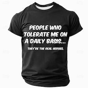 男性用グラフィックTシャツ 面白い「私を容認する人々が本当の英雄です」引用 - 関連性のある家族&人間関係ユーモア