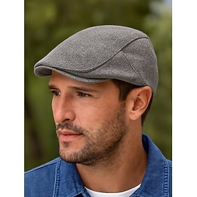メンズの通気性のあるリネンコットンフラットキャップ、クラシックなヴィンテージのニュースボーイアイビーハット。カジュアルウェア、運転、アウトドア活動に最適です。